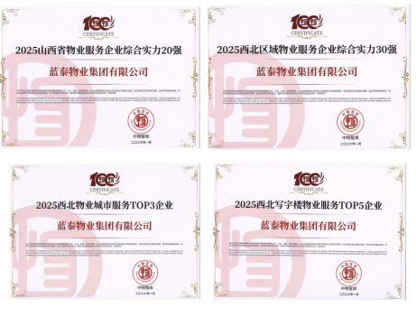 岁月不居,时节如流。在刚刚过去的2025年,蓝泰物业集团有限公司以卓越的专业实力和深厚的服务底蕴,在行业权威研究机构中物智库发布的多项重磅评选中脱颖而出,一举囊括“2025太原住宅物业十大品牌”、“2025太原公建物业十大品牌”等多项殊荣,并登顶“2025山西省物业服务企业综合实力20强”及“2025西北区域物业服务企业综合实力30强”榜单。这不仅是对蓝泰物业过去一年砥砺前行的肯定,更是对其深耕本土、辐射区域的高质量发展道路的最高礼赞。