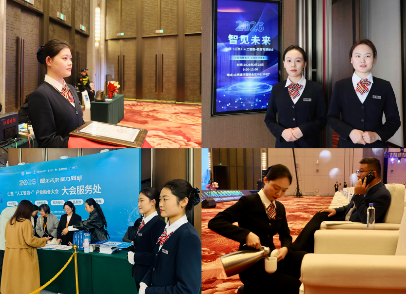 3 月28 日,山西潇河国际会议中心迎来了一场AI 领域的盛会 ——2026 山西“人工智能+”产业融合大会。此次大会由中国通信企业协会人工智能专业委员会指导,太原市人工智能行业协会主办,汇聚了众多行业精英与领军企业,共同探讨人工智能技术的最新进展与未来趋势。蓝泰集团作为山西省物业管理和城市服务的现代综合服务集 团,积极参与并承担了会议的安保服务与礼宾服务等任务,同时展现了其在智能化服务领域的实践成效与强劲实力。